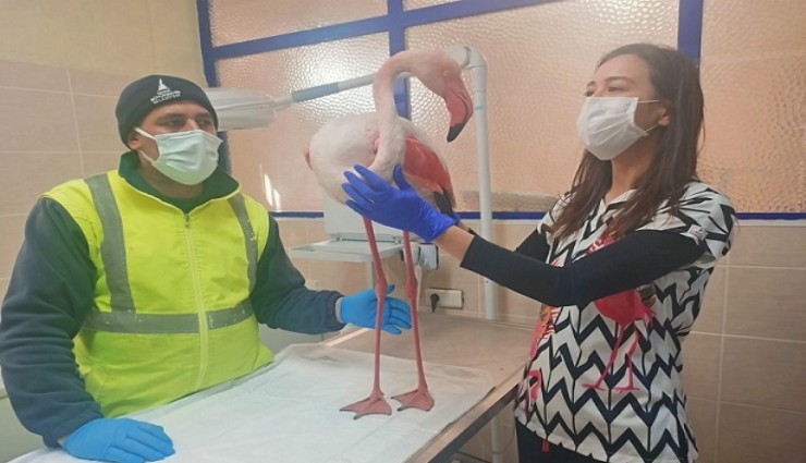 Sokak hayvanlarının tedavi ve bakımlarının yapıldığı İzmir Büyükşehir Belediyesi Veteriner Hizmetleri Şube Müdürlüğü'ne bağlı Kültürpark Küçük Hayvan Polikliniği kedi ve köpeklerin yanı sıra yaban hayvanları ve kuşlara da kucak açıyor. Polikliğin son hastası bir flamingo oldu. Uçamadığı için göç edemeyen flamingo, Çeşme'de duyarlı bir yurttaş tarafından bulunarak İzmir Büyükşehir Belediyesi veterinerlerine teslim edildi.