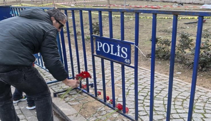 Muğla Eğitim ve Araştırma Hastanesi'nde yaşanan helikopter kazasının ardından kaza bölgesine gelen vatandaşlar kurulan polis barikatlarına karanfil bıraktı.