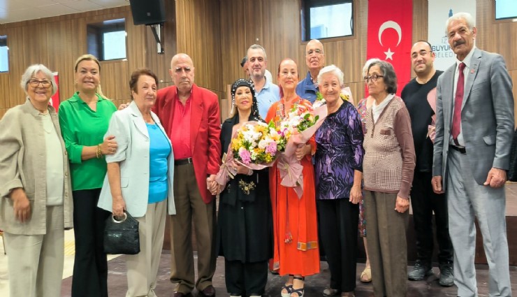 Büyükşehir’in çınarları, türkülere kimi zaman alkışlarla kimi zaman da sahnede dans ederek eşlik etti. Bedia Akartürk’ün ardından Rıza Konyalı da sahneye çıkarak kısa bir konser verdi.