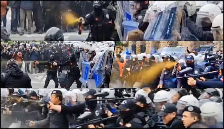 İşçiler ablukayı aşmak istediğinde polisler plastik mermi ve biber gazı sıktı. İçişleri Bakanı Ali Yerlikaya X hesabından yaptığı paylaşımla polislerin ‘sağ duyulu’ olduğunu söyledi.