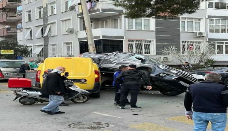 İzmir'de, dün saat 17.30 sıralarında Konak ilçesi Mehmet Ali Akman Mahallesi 18. Sokak’ta bir kaza meydana geldi. A.T. idaresindeki 06 CJF 318 plakalı hafif ticari araç ile B.K. idaresindeki 34 ZS 4476 plakalı araç, kavşaktan hızlı çıkınca kafa kafaya çarpıştı. Çarpışmanın etkisiyle B.K. idaresindeki araç A.T. idaresindeki aracın üstüne çıktı. Kazayı gören vatandaşların durumu 112 Acil Çağrı Merkezine bildirmesi üzerine olay yerine sağlık ve polis ekipleri sevk edildi. Kazada hafif şekilde yaralanan A.T., sağlık ekiplerinin kontrolünün ardından ambulans ile bölgedeki hastaneye kaldırıldı.