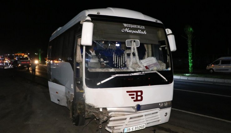Dün saat 23.00 sıralarında İzmir Çanakkale Yolu’nda meydana gelen olayda, Engin Y. idaresindeki 09 JL 542 plakalı otomobil ile Mehmet K. yönetimindeki 35 S 03191 plakalı işçi servisi çarpıştı. Çarpışmanın etkisiyle karşı şeride sürüklenen işçi servisi, 35 S 95060 plakalı başka bir işçi servisine çarptı; ardından bir iş yerinin duvarına çarparak durdu. Kazayı görenlerin ihbarı üzerine bölgeye polis ve sağlık ekipleri sevk edildi. Sağlık ekipleri tarafından yapılan incelemede, sürücüler ile yolcu konumunda bulunan A.T, A.Y, T.T. ve O.Y. yaralandığı belirlendi. Yaralılar sağlık ekipleri tarafından ambulansla çevre hastanelere sevk edildi. Yaralılardan A.T.’nin hayati tehlikesinin bulunduğu, diğer yaralıların ise durumlarının iyi olduğu öğrenildi.