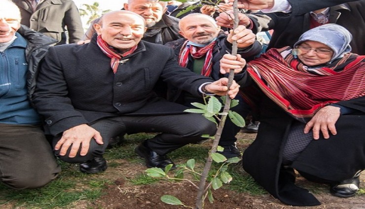 Konuşmaların ardından Başkan Soyer ile eşi Neptün Soyer, törene katılanlarla birlikte Turuncu Bahçe’ye fidan dikti.