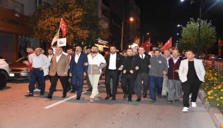 İsrail’in Gazze saldırılarını protesto etmek amacıyla Kemalpaşa’da yürüyüş düzenlendi. Kur’an tilavetinin ardından yürüyüşe katılan gruplar adına basın açıklamasını yapan Anadolu Gençlik Derneği Kemalpaşa Şubesi Başkanı Mustafa Gözütok, “Filistin’de asıl ve tek sorunun işgal rejiminin olduğunu biliyoruz. Siyonist işgal, yalnızca Filistin için değil, başta bölgemiz olmak üzere dünya barışı için çok ciddi bir tehdittir. O halde bu tehdide karşı hepimiz aynı yerde buluşup, ortak bir tavır takınmak durumundayız. İşgalci çeteyi gelinen aşamada katliamcı ve işgalci uygulama ve politikalarından vazgeçmesi, Gazze’ye uyguladığı ambargoyu kaldırması ve yeni bir katliama girişmemesi konusunda uyarıyoruz. Bu katliam ve soykırım son buluncaya kadar mücadelemize milletimiz ile birlikte devam edeceğiz” ifadelerini kullandı.