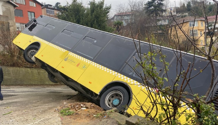 Beykoz’da sürücüsünün park halinde bıraktığı İETT otobüsü yokuş aşağı kayarak bir evin bahçesine düştü. Kazada kimse yara almazken otobüs saatler süren çalışmanın ardından olay yerinden kaldırıldı.