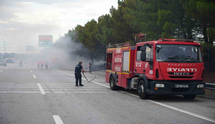 İstanbul-Edirne Otoyolu’nda korkutan yangın