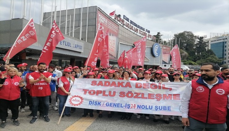 İzmir Büyükşehir Belediyesi şirketlerinden İZENERJİ A.Ş.’de örgütlü Genel-İş İzmir 2 ve 9 No’lu Şubeler ile belediye bürokratları ve SODEMSEN arasındaki toplu iş sözleşme görüşmelerinde tıkanma yaşanmıştı. Yaklaşık 10 bin işçiyi kapsayan sözleşmede, daha önce yüzde 40 olan zam önerisi yüzde 45’e çekildi. Ancak bu teklif de sendika tarafından kabul edilmedi ve işçiler bugün yarım gün iş bıraktı. İş bırakma kararının ardından işveren temsilcileri, sendika temsilcilerini görüşmeye çağırdı. Sendika, İzmir Büyükşehir Belediyesi Genel Sekreteri Barış Karcı, SODEMSEN ve şirket yetkilileriyle masaya oturdu. Kültürpark Basmane Kapısı önünde toplanan çok sayıda işçi, taleplerini sıralamak için eylem yaptı. Yaklaşık 5 saat süren görüşmede, toplu iş sözleşmesinde yer alan maddelerin tamamında uzlaşma sağlandı. Fakat yüzde 51’lik zam teklifi sendika tarafından kabul görmedi. Sendika yönetiminin yapacağı toplantının ardından işçilerin yarın da iş bırakma eylemi yapıp yapmayacaklarına karar verilecek.