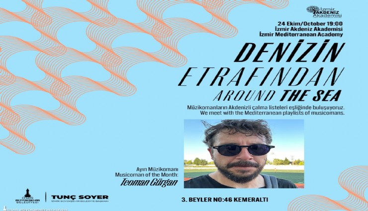İzmir Büyükşehir Belediyesi bünyesinde faaliyet gösteren İzmir Akdeniz Akademisi, “Denizin Etrafından” başlıklı etkinlik dizisi kapsamında ayda bir kez salı günleri sanatseverleri müzikomanların Akdenizli çalma listesi eşliğinde buluşturuyor. Akademi ilk olarak 24 Kasım’da Teoman Gürgan’ı ağırlayacak.