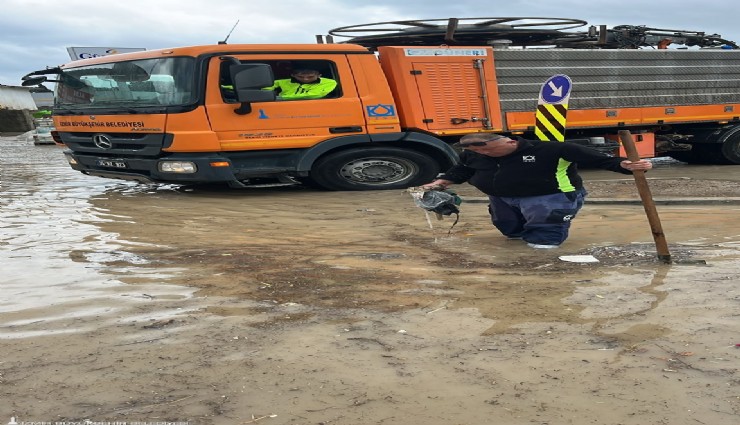 İzmir Büyükşehir Belediyesi ekipleri yağmur mesaisinde