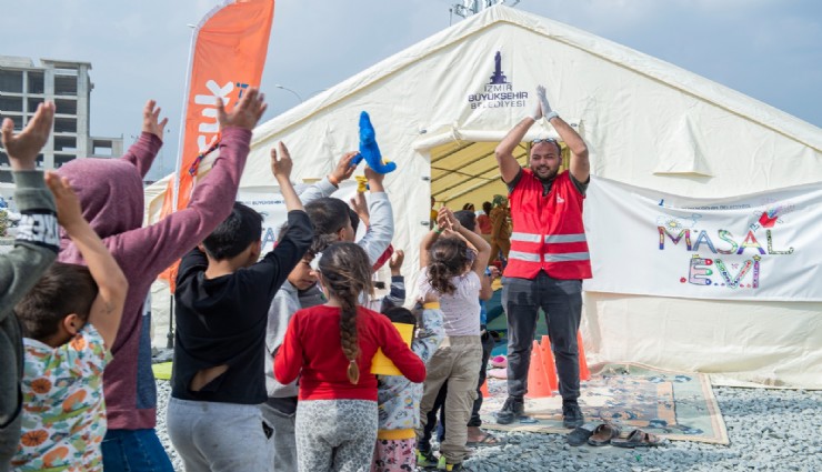 İzmir Büyükşehir Belediyesi Sosyal Projeler Dairesi Başkanlığı’na bağlı Çocuk Belediyesi bünyesinde çalışan ve çadır kentteki depremzede çocuklarla ilgilenen Zeliha Uçan, “Burada Masal Evi’ni kurduk. Depremzede çocuklarımız için çocuk gelişimi uzmanları, sosyal hizmet uzmanları ve psikologlarımız ile hizmet veriyoruz” dedi. Çocuk Belediyesi Şube Müdürlüğü’nde görevli Bahar Süreklier de “Masal Evi etkinliklerimiz sürüyor. Eğitmenlerle çocukların iyi olma hallerini destekleyecek atölyeler yapıyoruz. Egzersizler yaptırıyor, oyunlar oynuyoruz” diye konuştu.