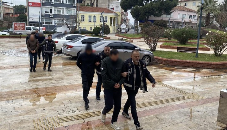 6 şüpheli adliyeye sevk edildiDüzenlenen eş zamanlı operasyonlarda da; Aydın'da S.Ç., S.K., E.D., H.D., İzmir'de G.Ç., Muğla'da E.T. yakalanarak gözaltına alındı. Emniyetteki işlemlerinin ardından 6 şüpheli adliyeye sevk edildi.