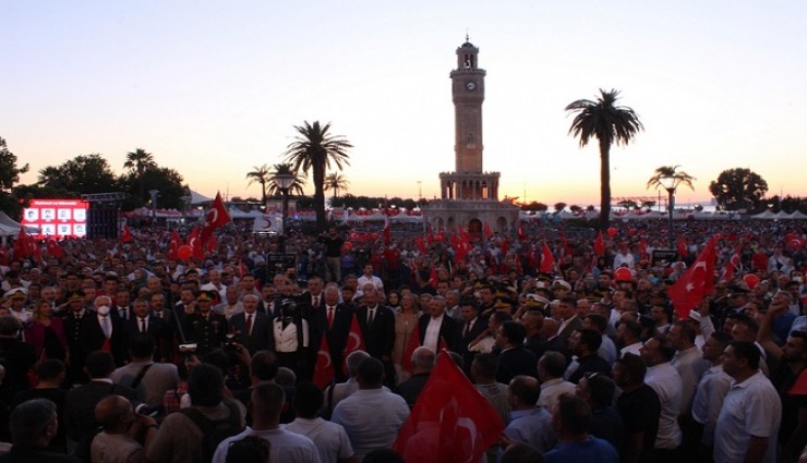 İzmir’in 15 Temmuz Demokrasi ve Milli Birlik Günü etkinlikleri Konak Meydanı’nda düzenlendi. Binlerce İzmirlinin katıldığı anmada 15 Temmuz şehitleri anıldı. Programda Cumhurbaşkanı Recep Tayyip Erdoğan’ın hitabı barkovizyondan izletilirken, 00.13’te ise İzmir’in tüm camilerinden dualar okunarak şehitler anıldı.