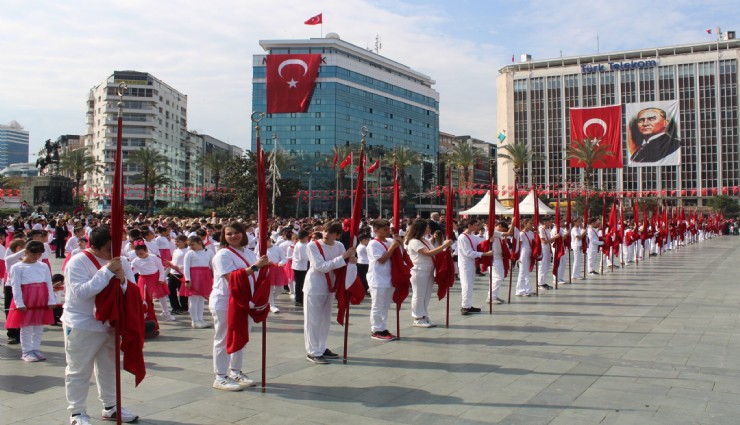 İzmir’de 23 Nisan Ulusal Egemenlik ve Çocuk Bayramı programları çerçevesinde Cumhuriyet Meydanı’nda yapılan resmi törene vatandaşların ilgisi yoğun oldu. Her yaştan öğrenci meydanda yoğunluk oluştururken, meydanda yaklaşık bin 500 öğrenci sahne alıp bayraklar eşliğinde görsel bir şölen oluşturdu. Çocuk bayramını kutlamak için bir araya gelen çocuklar, birbirinden renkli gösteriler sundu.