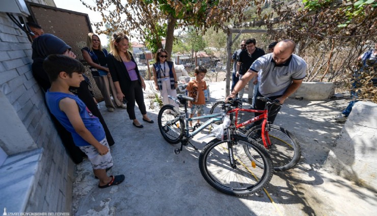 Yangında kısmen zarar gören evlerindeki eşya sıkıntısını Büyükşehir personeline aktaran anne Hanife Şimşek, çocuklarının yanan bisikletleri için de destek isteyince Oğuzhan Şimşek (11) ve Orhan Şimşek (8) kardeşlerin yüzlerini güldürecek bir hikâyenin temelleri atıldı. İzmir Büyükşehir Belediyesi Sosyal Hizmetler Dairesi Başkanı Ela Hızlı ve ekibinin planıyla çocuklara bisikletler alındı ve haber verilmeden bir ziyaret organize edildi.