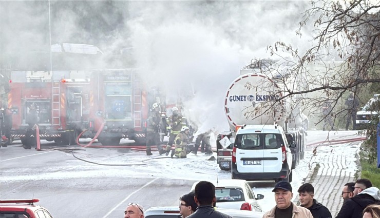 İzmir'in Aliağa ilçesinde park halindeki bitkisel yağ yüklü tankerin çekici kısmında yangın çıktı. İtfaiye ekiplerinin hızlı müdahalesiyle yangın kısa sürede söndürüldü.