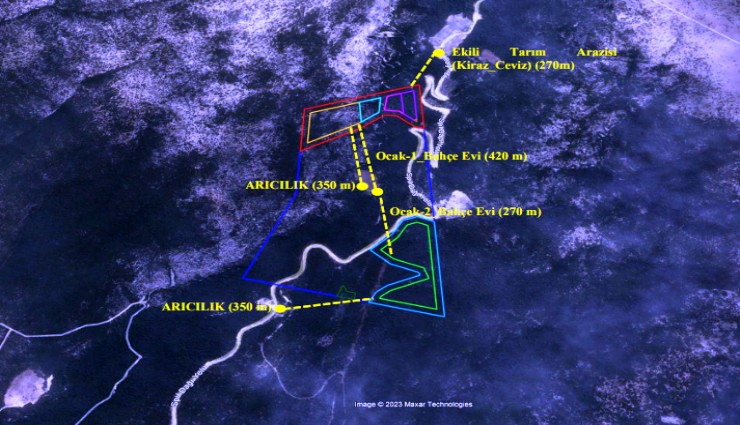 Dağıstan Maden Agrega Limited Şirketince açılacak kalker ocağına en yakın tarım arazisinin 270 metrede bulunduğu ve 350 metre mesafede de arıcılık faaliyetleri yürütüldüğü belirtildi. Söz konusu taş ocağının kurulacağı alanın 1/100.000 Çevre Düzeni Planı’nda da “orman alanı” olarak gözüktüğü bilgisi verildi.