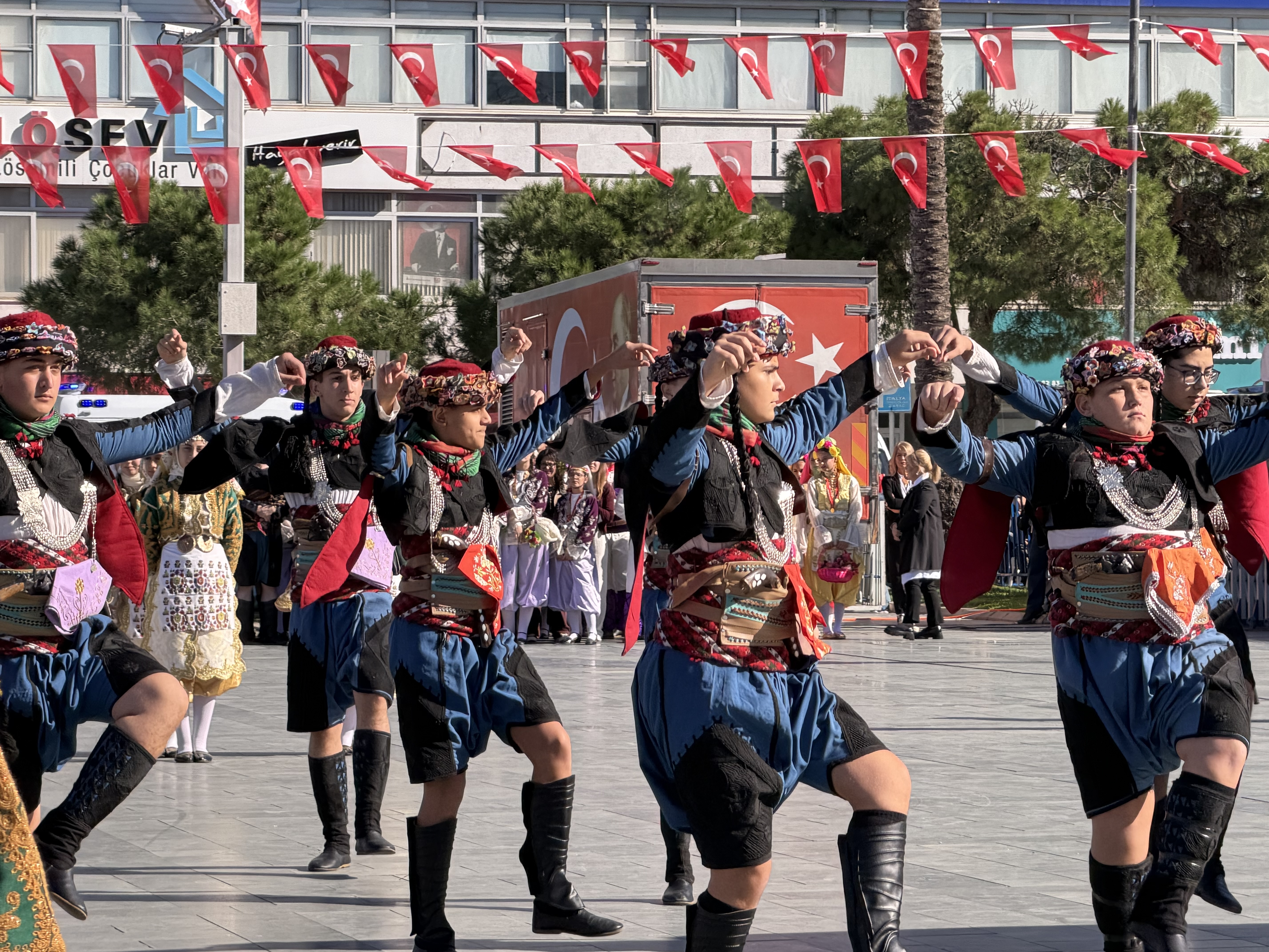 Saygı duruşu ve İstiklal Marşı’nın ardından Cumhurbaşkanı Recep Tayyip Erdoğan’ın 29 Ekim mesajı okundu. Vali Elban’ın günün anlam ve önemine ilişkin konuşmasının ardından öğrenciler şiir okudu, Ege Üniversitesi, İl Milli Eğitim Müdürlüğü ve İzmir Yüksek Teknoloji Enstitüsü halk dansları ekipleri sahne aldı.