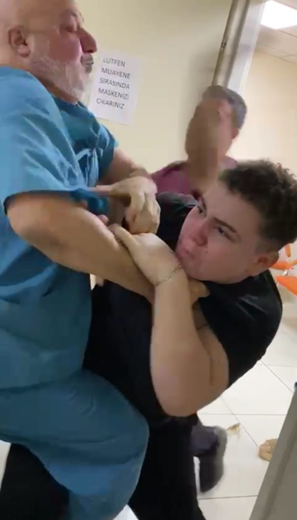 ‘Beyaz kod’ veren ve sağlık raporu alıp şahıslardan şikayetçi olan Dr. Cüneyt İzzettinoğlu, “Çok utanç verici ve talihsizce. 10 yıl okuyup doktor oluyoruz. Bu muameleyi hak etmiyoruz. Gemi adamı belgesi için gelmişlerdi. Muayene neticesinde görmesinin yetersiz olduğunu söyledim. Durumu anlattım ama hareketleri agresifleşti. ‘Başka doktora gideriz, dediğiniz gibi çıkmazsa sizle görüşürüz’ diye tehdit ettiler. Açıkçası işime de geldi. Çünkü başka doktor da benim dediklerimi diyecekti. Kısa bir süre sonra A.C.’nin kardeşi gelip hakaret etmeye başladı. Ben de belki cayıp gider diye sekreterime videoyu açmasını söyledim. Ancak öyle olmadı, direkt saldırıya geçti. Ben de nefsi müdafaa yaptım. 3 kişi saldırdılar. Kendi odamın içinde oldu. Hem ben hem odam dağıldı. Bir ameliyatım vardı, yapamadım. Olayı kınıyorum. Şikayetçi oldum ve sonuna kadar gideceğim” dedi.