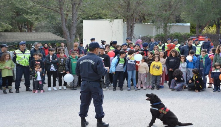 Jandarma ekipleri, 31 Mart tarihinde Menderes Özdere Özel Eğitim Merkezi Komutanlığında geçici olarak kalan 150 depremzede ailenin çocuğuna trafik eğitimi verdi. Uygulamalı trafik eğitimi alan minikler neşe dolu anlar yaşarken, kendilerine hediye edilen boyama kitabı ile de mutlu oldu.