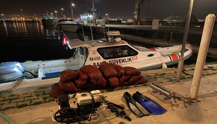 İzmir Körfezi’nde Sahil Güvenlik ekiplerince yasa dışı avcılık yapanlara yönelik gerçekleştirilen operasyonda, 20 çuval içerisinde toplam 500 kilogram midye ele geçirildi.