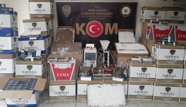 İzmir'in Çiğli, Buca, Karabağlar, Konak ve Bornova ilçelerinde kaçak sigara imalatı yapan adreslere polis ekipleri tarafından gerçekleştirilen eş zamanlı operasyonda milyonlarca makaron ve tonlarca kaçak tütün ele geçirilirken, 10 kişiye de adli işlem uygulandı.