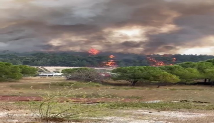 Yangın, saat 13.06 sıralarında Sarnıç Göleti mevkiindeki ormanlık alanda çıktı. ihbar üzerine adrese İzmir Orman Bölge Müdürlüğüne bağlı 5 uçak, 8 helikopter, 21 arazöz, 8 su ikmal aracı ve 6 dozer sevk edildi. Ekiplerin alevlerle mücadelesi havadan ve karadan devam ediyor.