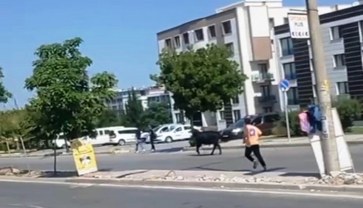 İzmir’de bayramın ilk günü sahiplerinin elinden kaçan kurbanlık danalar trafikteki sürücülerde ve vatandaşlarda paniğe neden olurken, sahiplerinin kaçan hayvanları yakalama çalışmaları ise cep telefonu kameralarına yansıdı.