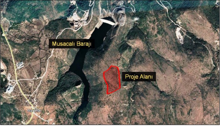 “Proje alanı olarak mülkiyeti yatırımcı firmaya ait olan 134 ada, 1 nolu parsel belirlenmiş olup, bahse konu parsel 125.786,45 m2 (12,58 Hektar) alana sahiptir” denilen ÇED dosyasında şu bilgiler de verildi: “Proje alanı ile Musacalı Barajı rezervuar alanına en yakın noktada 355 metre mesafe bulunmaktadır. 20 Ağustos 2021 itibari ile Musacalı Barajı’nda su tutma işlemine başlanılmıştır. Musacalı Barajı, Türkiye’nin en verimli ovalarından biri olan Bakırçay Ovası’nda 22.950 dekar araziye can suyu vermesi planlanmıştır. Bölgede hem sulama maliyetleri düşürmesi hem de verimi artırması amaçlanmıştır. Kocadere üzerine inşa edilen Musacalı Barajı’nın temelden yüksekliği 79 metredir. Musacalı Barajı yaklaşık 25 milyon m3 su tutma kapasitesi ile bölgenin en büyük barajlarından birisidir. Gövdesi için 1.156 bin m3 dolgu yapılmıştır.”