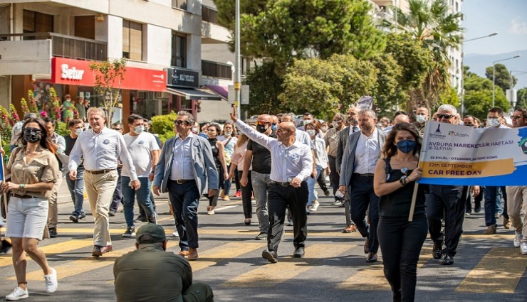 İzmir Büyükşehir Belediye Başkanı Tunç Soyer 22 Eylül Otomobilsiz Kent Günü’nde düzenlenen yürüyüşe katıldı. “Otomobilsiz ve İnsan için Kentler Söyleşisi’nde konuşan Soyer “Şehirleri, insanların içinde huzurlu yaşayacağı alanlar olarak tasarlamak gerekiyor. Dünya’nın ilk Cittaslow Metropolü olma yolundaki İzmir’in içinde keyifle yürünebilen bir kent olması için var gücümüzle çalışıyoruz” dedi.