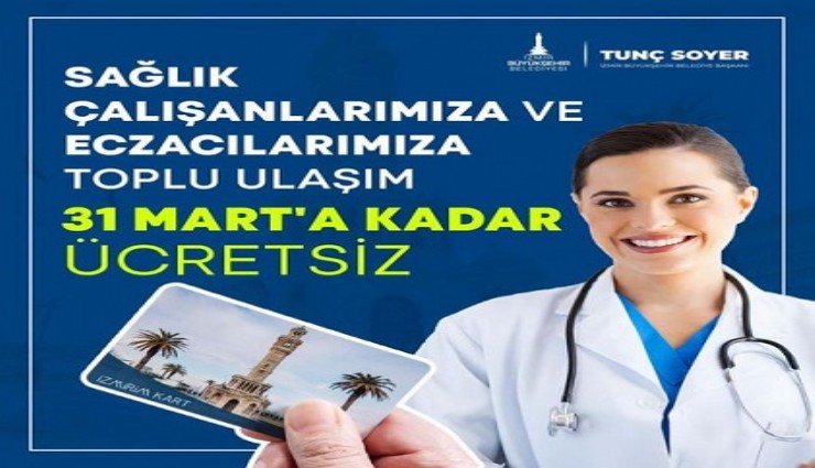 İzmir Büyükşehir Belediye Başkanı Tunç Soyer İzmir’de sağlık çalışanları ve eczacılara ücretsiz toplu ulaşımın 31 Mart 2022’ye kadar uzatıldığını duyurdu. Sosyal medya hesaplarından açıklama yapan Soyer, “Pandemi sürecinin kahramanları, sağlık çalışanlarımıza ve eczacılarımıza toplu ulaşımdan ücretsiz yararlanma hakkını 31 Mart 2022 tarihine kadar uzattığımızı duyurmak isterim. HES Kodu tanımlanan ‘Sağlıkçı İzmirim Kartlarını’ en kısa sürede almalarını önemle rica ediyorum” ifadelerini kullandı.
