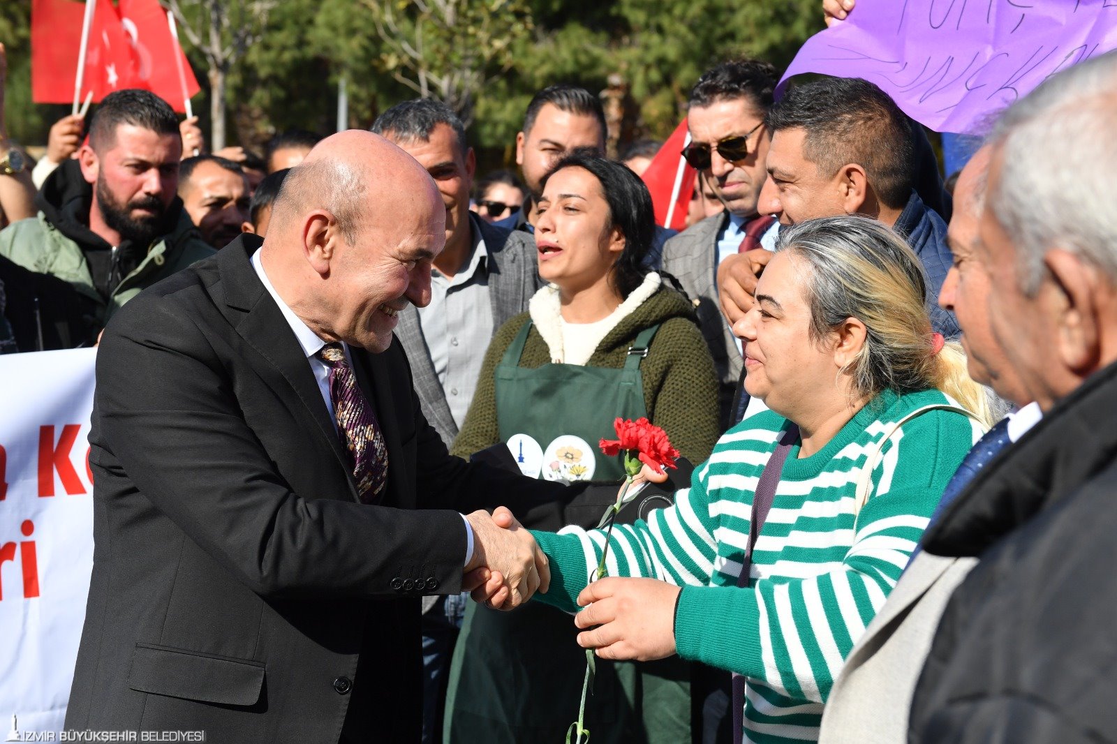 İzmir Büyükşehir Belediye Başkanı Tunç Soyer’in konuşması sırasında sık sık slogan atıldı. Yurttaşların “Dik dur eğilme İzmir halkı seninle” sloganı üzerine Soyer, “Asla eğilmem. Hiç bir zaman eğilmedim. Bundan sonra kimse eğemez” karşılığını verdi. Daha sonra konuşmasını sürdüren Tunç Soyer, şunları söyledi: “Bu şehir, bu memleket sizinle güzel. Biz birlikte güzeliz. Artık asla korkmayın. Bundan sonra hiç kimse evinizi başınıza yıkamayacak. Hiç kimse sizi sokakta bırakamayacak. Kimse sizin iş, aş ve eğitim hakkınızı elinizden alamayacak. Hiç kimse Romanların muazzam kültürünü hakir göremeyecek. Buna asla izin vermedik, vermeyeceğiz. Bugün açtığımız seyyar kestane ve çiçek satış noktalarımız, bu kararlılığımızın ete kemiğe bürünmüş halidir. Sizlerin emeğine, alın terine her zaman sahip çıkacağımızın teminatıdır. Sizlerin huzurunda bir kez daha söz veriyorum. İzmir'in 8 bin 500 yıllık uyum meydanını hiç durmadan büyüteceğiz. Ayrımcılık karşısında asla taviz vermeyeceğiz. İyi ki varsınız, iyi ki bu şehre can katıyorsunuz. Daima çok renk. Daima çok ses. Daima çok nefes, daima İzmir…”