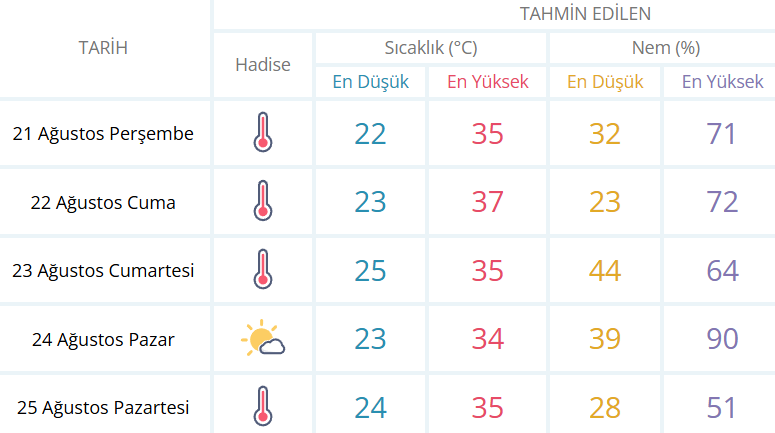İzmir için genel hava durumu ise şöyle: