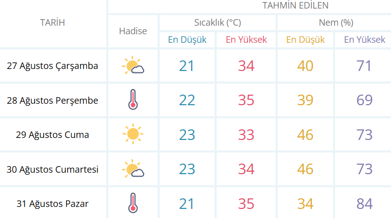 İzmir'in 5 günlük genel hava durumu tahmini ise şöyle: