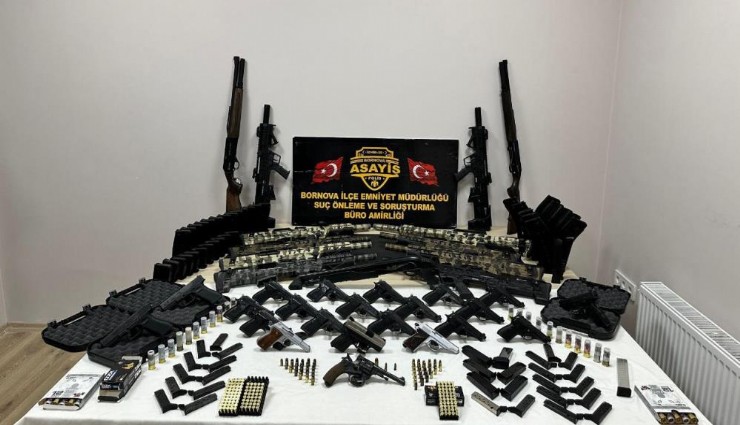 Bornova İlçe Emniyet Müdürlüğü Suç Önleme ve Soruşturma Büro Amirliği ekipleri, 4 kişilik bir grubun ilçede silah ticareti yaptığı bilgisi üzerine harekete geçti. Savcılıktan alınan talimatla adreslere baskın düzenleyen ekipler, 22 ruhsatsız tabanca, 14 pompalı tüfek, 51 adet şarjörü çok sayıda dolu mermi ile geçirdi.