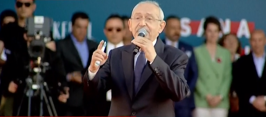 “Kuruluşun ve kurtuluşun kentinteyiz. Hasan Tahsinlerin kentindeyiz.Benim umudum sizlersiniz” diyerek şöyle konuştu: “Türkiye’yi düştüğü bu durumdan birlikte çıkaracığız. Ne olursa olsun bütün engelleri yıkacağım ve Türkiye’yi aydınlığa çıkaracağım. Herkes için adalet olacak. 85 milyonu kucaklayacağız. Kim haksızlığa uğradıysa Bay Kemal yanında olacak. Yaşamın her yerinde adalet olmalı. 215 bin 650 genç ilk kez sandıkta oy kullanacak. Türkiye’de 5 milyon 300 genç ilk defa oy kullanacak. Bu seçimler gençlerin kendini göstermesi gereken bir seçim. Bu seçimler hiçbir çocuğum yatağa aç girmeyeceği bir Türkiye’yi inşa edecek bir seçim. Bu seçimler Türkiye’ye demokrasiye getirme seçimi. Söz veriyorum bu ülkeye baharı getireceğim. Çiftçiyi toprakla buluşturacağım. Kırsalda yaşayan tüm çalışanların sosyal güvenlik primini biz ödeyeceğiz.”