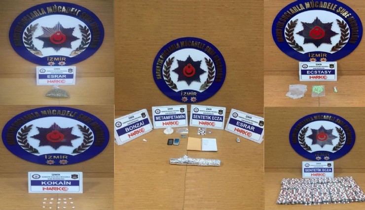 İzmir'de kent genelinde polis ekiplerinin bir hafta içerisinde yaptığı operasyonlarda çok sayıda uyuşturucu madde ele geçirilirken, olaylarla ilgili gözaltına alınan 11 şüpheli tutuklandı.