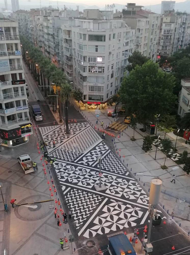 İzmir Büyükşehir Belediyesi proje kapsamında kentte yaya trafiğinin en yoğun olduğu bölgelerden Alsancak Talatpaşa Bulvarı’nın Kıbrıs Şehitleri Caddesi kısmında yayaların geçmesi için Avrupa’daki örneklerine benzer 34 metre uzunluğunda bir yaya platformu yaptı. Yükseltilmiş yaya geçidi üzerine İzmir’in tarihi köklerinden gelen figüratif desenler çalışıldı. Engelli ve yaşlı vatandaşların erişimi göz önünde bulundurularak yol ve kaldırımlar aynı seviyeye getirildi. Böylece alan mini bir meydan görünümü kazanırken yayaların kaldırımlara inip çıkmadan karşıya geçişi de sağlanmış oldu.