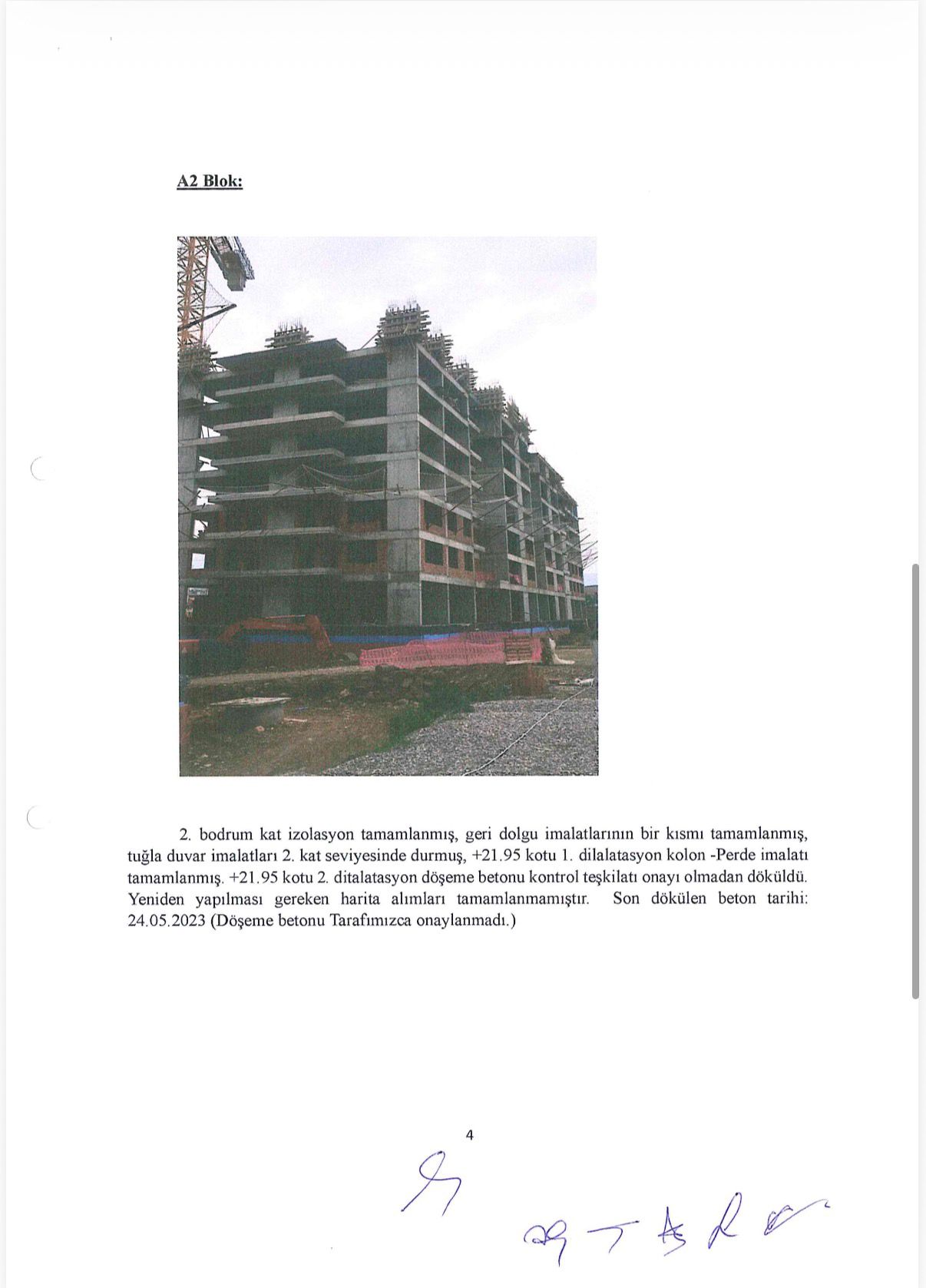 Örnekköy 3. Ve 4. Etapta iş süresi 31.07.2025 tarihinde bitmiş olmasına rağmen mahkeme tarafından 3. Etap ta imalat seviyesi % 22,11, 4. Etapta % 35,66, Aktepe-Emrez’de % 9,77, Uzundere 3. Etap ta % 5,35, 4. Etap ta % 0 olarak tespit edildi.