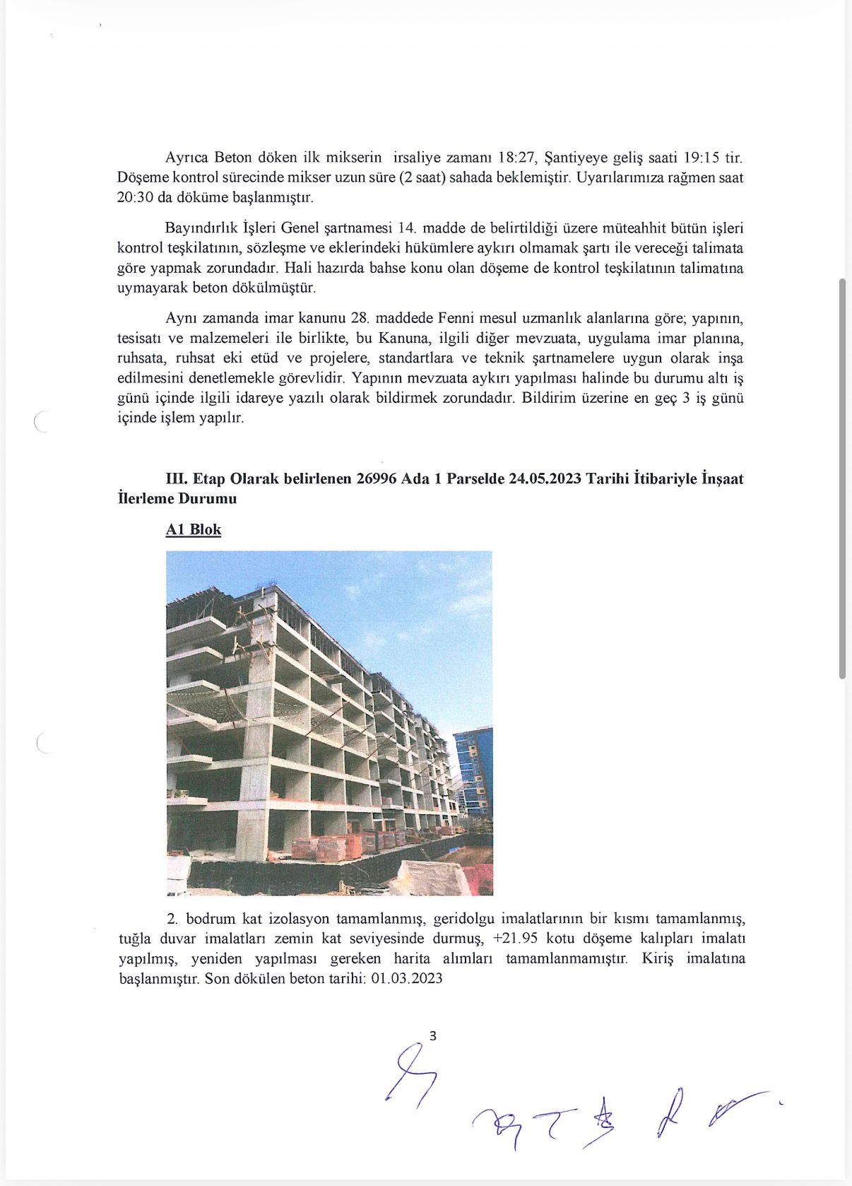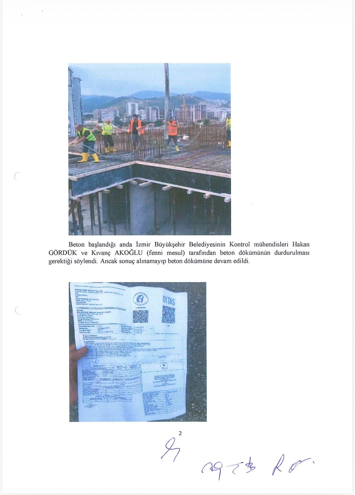 Bakanlığın İl Müdürlüğünün yazısında; İZBETON A.Ş. tarafından yapım işinin kooperatif üzerinden yürütülmesinin mevzuat açısından uygun olmadığı tespit edildiğinden, kooperatif yöneticileri hakkında Cumhuriyet Başsavcılığına suç duyurusunda bulunduğunu, Belediye ve İZBETON sorumluları için İzmir Valiliği’ne bildirimde bulunulduğunu belirterek ileride kamu zararı doğmaması için imalatların durdurulması gerektiğini belirtti.