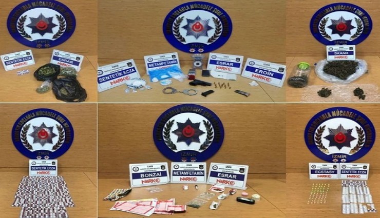 İzmir'de polis ekipleri tarafından bir hafta içerisinde gerçekleştirilen operasyonlarda çok sayıda uyuşturucu madde ele geçirilirken, olaylarla ilgili 53 şüpheliye işlem yapıldı; 15 şüpheli ise tutuklandı.