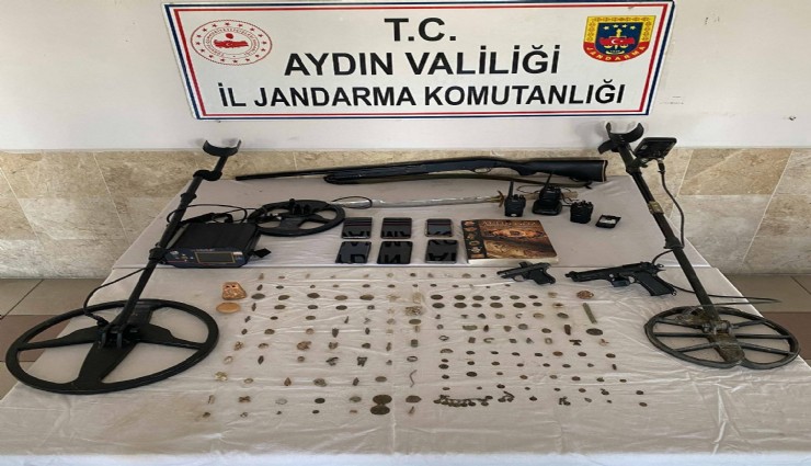 Aydın İl Jandarma Komutanlığı Kaçakçılık ve Organize Suçlarla Mücadele Şube Müdürlüğü ekiplerince tarihi eser kaçakçılığına yönelik koordineli çalışma başlatıldı. Aydın merkezli İzmir ilinde Kültür ve Tabiat Varlıklarını Koruma Kanuna Muhalefet suçunu teşekkül halinde organize işleyen Ö.Ö, İ.E.Ç, H.Y.T, H.İ.G, B.Ö, M.Ç isimli şüpheli şahısların ikamet ve eklentilerinde eş zamanlı olarak arama yapıldı. Aramalarda 1 adet tarihi eser olduğu değerlendirilen kılıç, 175 Adet tarihi eser obje ve sikkeler, 1 adet Tarihi eser işaret ve sembolleri yazılı kitap, 2 adet detektör, 3 adet el telsizi, 4 adet telsiz bataryası, 2 adet tabanca, 1 adet ruhsatsız tüfek, 6 adet cep telefonu ele geçirildi. Şüphelilerin tamamı yurt dışı çıkış yasağı ve adli kontrol kararı ile serbest bırakıldı.