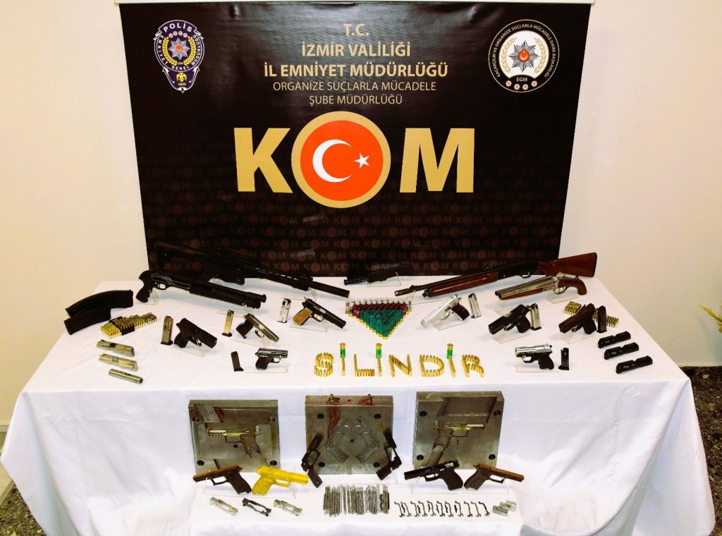 Ülke genelinde düzenlenen ‘Silindir Operasyonu’ çerçevesinde İzmir merkezli Gaziantep, Balıkesir, Konya ve Isparta’da 3 farklı suç örgütüne yönelik eş zamanlı operasyonda çok sayıda tabanca, tüfek, senet, esrar ve uyuşturucu madde ele geçirildi. Olayla ilgili toplamda 41 şüpheli gözaltına alındı.