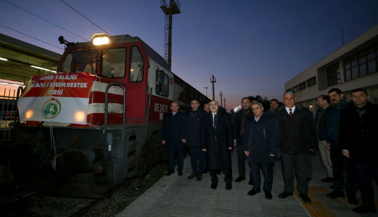 İzmir Valisi Yavuz Selim Köşger’in de katıldığı uğurlama ile 15 kapalı, 3 açık vagondan oluşan tren katarıyla 80 ton (4 vagon) gıda malzemesi, yaklaşık 60 ton (3 vagon) su, süt ve meyve suyu, yaklaşık 8 ton (2 vagon) battaniye ve kefen, yaklaşık 50 ton (4 vagon) bebek ve hijyen malzemesi, yaklaşık 5 ton (1 vagon) giyim malzemesi, yaklaşık 12 ton (1 vagon) soba- ısıtıcı, soba borusu, yaklaşık 20 ton (1 açık vagon) odun, yaklaşık 14 ton (1 açık vagon) kömür-odun, yaklaşık 500 kg (1 açık vagon) ,2 adet (4 gözlü) seyyar tuvalet depremzedelere gönderildi.
