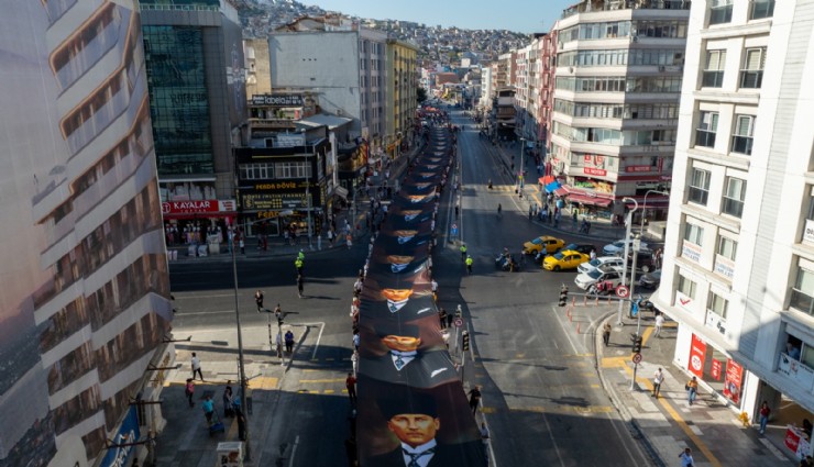 İzmir Büyükşehir Belediyesi'nin hazırladığı 350 metre uzunluğundaki Atatürk posterini taşıyan katılımcılar Anafartalar ve İkiçeşmelik caddeleri üzerinden ilerledi. Yürüyüş coşkusu Cumhuriyet Meydanı'na kadar devam etti. Marşlar eşliğinde yürüyen korteje, vatandaşlar da alkışlarla eşlik etti. Duygularını aktaran İzmir Büyükşehir Belediye Başkanı Dr. Cemil Tugay, “Çok güzel bir yürüyüş gerçekleştiriyoruz, duyguluyuz. 102 yıl önceki büyük zaferin gururunu hala yaşıyoruz. Gün boyunca etkinliklerle kutlamaya devam edeceğiz. Bu yürüyüş başlangıç” dedi.