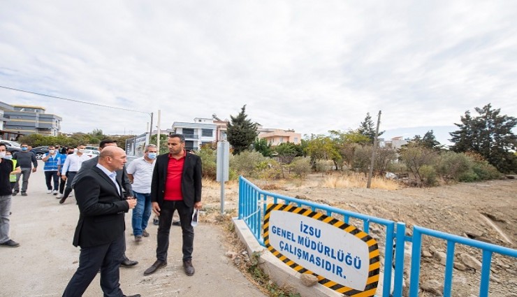 İzmir Büyükşehir Belediye Başkanı Tunç Soyer, ilçede İZSU Genel Müdürlüğü tarafından yürütülen 120 milyon liralık yatırım kapsamındaki içme suyu ve altyapı çalışmalarını inceledi.