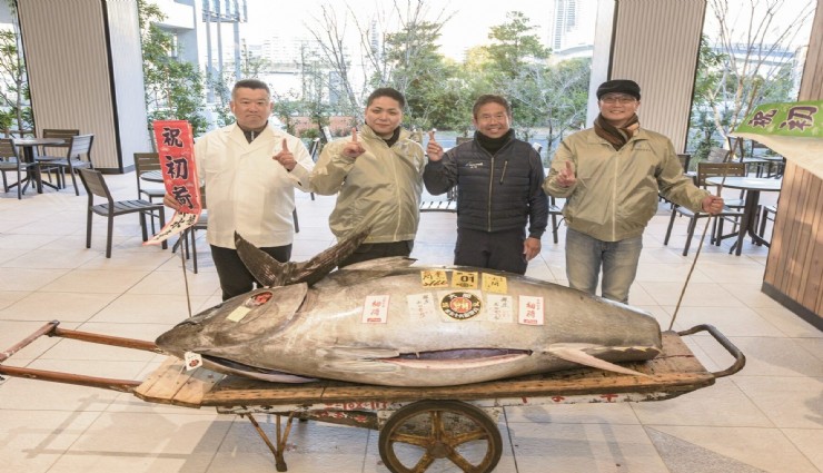 Japonya'nın başkenti Tokyo'da bulunan Toyosu Balık Hali, yeni yılda düzenlenen geleneksel balık mezatına ev sahipliği yaptı. Balıkçılar, Japonya ve dünyanın farklı bölgelerinden tutulan orkinos balıklarını en yüksek fiyata satabilmek için kıyasıya yarıştı. Bu yılki balık mezatında en yüksek fiyat ise Japonya'nın Aomori eyaletinde yakalanan ve 207 milyon yene (yaklaşık 1,3 milyon dolar) satılan 276 kilogramlık mavi yüzgeçli orkinos oldu.