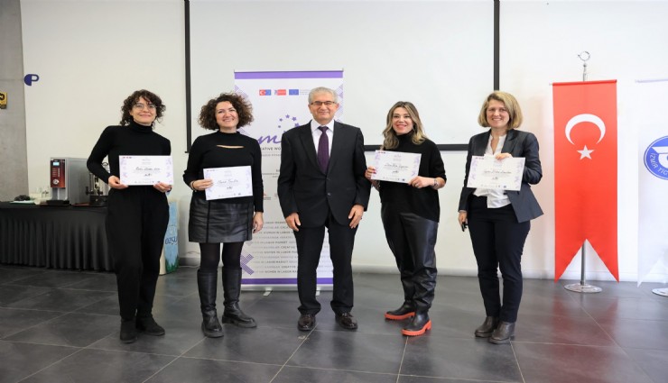 İzmir Valiliği’nin koordinasyonunda, İzmir Ekonomi Üniversitesi (İEÜ) ile Ege İş Kadınları Derneğinin (EGİKAD) desteğiyle hayata geçen proje ile 3 farklı ülkeden İzmir’e gelen 13 kadın, bir hafta boyunca endüstri alanında eğitim aldı. İEÜ’nün ev sahipliğinde girişimcilik, uluslararasılaşma, sanat ve tasarım, medya ve pazarlama alanında eğitim sürecinden geçerek sertifikalarını alan kadınlar, kendilerini farklı alanlarda geliştirmiş oldu.