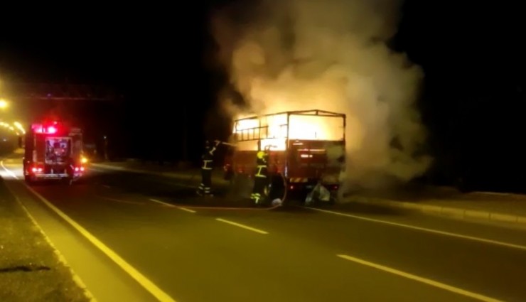 Aydın Efeler ilçesi'nde seyir halinde ilerleyen bir kamyonet bir anda tutuştu. Alev alev yanan kamyonet kullanılamaz hale geldi
