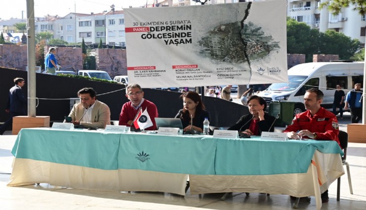 Etkinlikte bir konuşma yapan Karabağlar Belediye Başkanı Helil Kınay, “Masanın bu tarafında yasamız, yönetmeliklerimiz, konunun uzmanı, mühendislerimiz, mimarlarımız ve şehir plancılarımız var. Masanın öteki tarafında ise farkında olmamız gereken rant, hırs, hırsızlık ve ahlaksızlık var. Yitirilen canların üzerinden pazarlık yapanlar var. 30 Ekim tarihinde sayısı 10'u bile bulmayan binalardan canlarımızı çıkarmaya çalıştık. Kimimiz eşyalarını çıkarmaya çalıştı. Depremde canını kurtaranlar binalara giremezken şimdi ne olacak nereye sığınacağız sorunu ile karşılaştı . Toplanma alanları geçici barınma alanları sorunları ile afet öncesi sonrası pek çok süreci yürütmek gerekiyor. Acıları yaşadık sonuçlarını etkilerini hala yaşıyoruz. Aslında depremin farkındayız. Yaşadığımız her depremde hatırlıyor ama unutuyoruz. Tüm bunları yanında biz 6 Şubat’ı yaşadık ve biz bu süreci hala yaşıyoruz ve hala enkazın altındayız” diye konuştu.