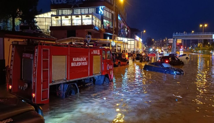 Karabük’te etkili olan sağanak sonrası metrekareye 45 kilogram yağış düşerken yollar göle döndü, araçlar suya gömüldü, çok sayıda ev ve iş yerini su bastı.